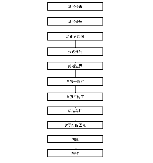基層檢查>>>基層處理>>>涂刷底涂劑>>>分格彈線>>>封堵邊界>>>自流平攪拌>>>自流平施工>>>成品養護>>>封閉打蠟罩光>>>切縫>>>驗收。不同用途自流平施工工藝不同,具體施工流程請參考相應的施工方案。.png)