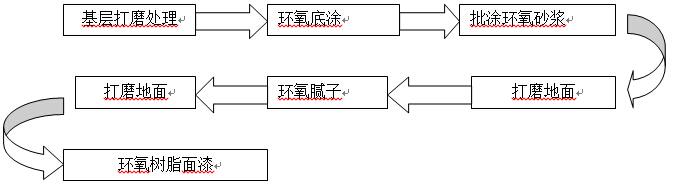 根據業主等有關方面的要求和現場的情況,設計如下施工工藝;基層打磨處理,環氧底涂,環氧中涂,環氧批涂,環氧自流平面涂。