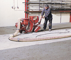 對(duì)基層采用拋丸機(jī)打磨同時(shí)吸塵處理,用專業(yè)拋丸機(jī)將地面整體拋丸打磨吸塵,使地面形成粗糙表面,形成良好的粘接結(jié)合面,根據(jù)實(shí)際每小時(shí)拋丸100平米處理能力,每天專業(yè)拋丸機(jī)可以打磨吸塵地面800平米,可以滿足第二天的下個(gè)工序施工要求。該拋丸機(jī)在打磨過程中有自動(dòng)吸塵裝置,不會(huì)產(chǎn)生揚(yáng)塵現(xiàn)象,這樣對(duì)周圍在使用過程中的成品會(huì)起到很好的保護(hù)作用。