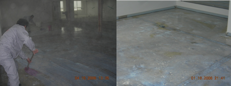 2、如果混凝土表面有缺陷或者存在浮漿層,則必須用適當的機械辦法將其清除,直至露出堅固的表面,再用真空吸塵器和用水沖洗。