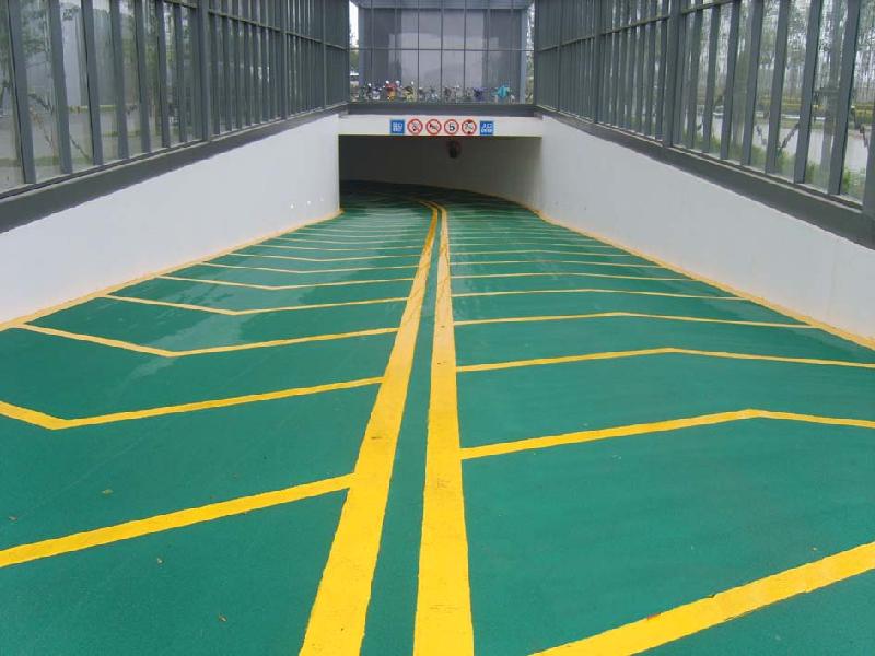 止滑坡道專用環氧樹脂自流平采用雙組份無溶劑環氧樹脂添加優質固化劑,骨料選用高強度耐磨金剛砂施工而成,整體無縫、美觀靚麗、表面采用拋撒20-60目金剛砂達到防滑效果,可根據使用要求不同做到輕度止滑及高度止滑面。施工厚度一般3mm-5mm,使用年限達10年以上。