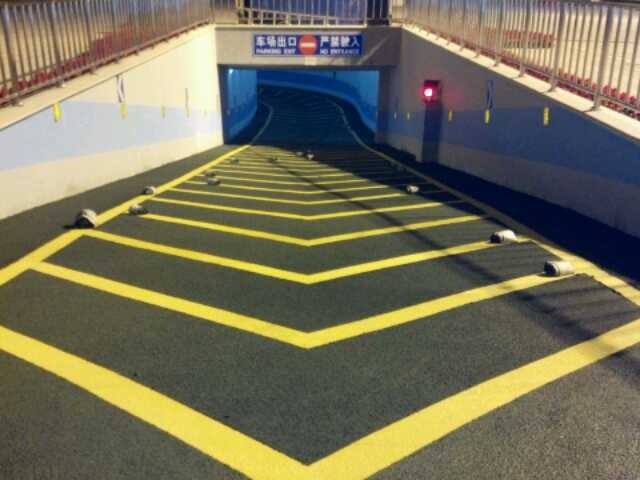 止滑坡道專用環氧樹脂自流平采用雙組份無溶劑環氧樹脂添加優質固化劑,骨料選用高強度耐磨金剛砂施工而成,整體無縫、美觀靚麗、表面采用拋撒20-60目金剛砂達到防滑效果,可根據使用要求不同做到輕度止滑及高度止滑面。施工厚度一般3mm-5mm,使用年限達10年以上。